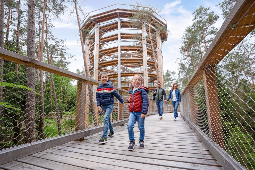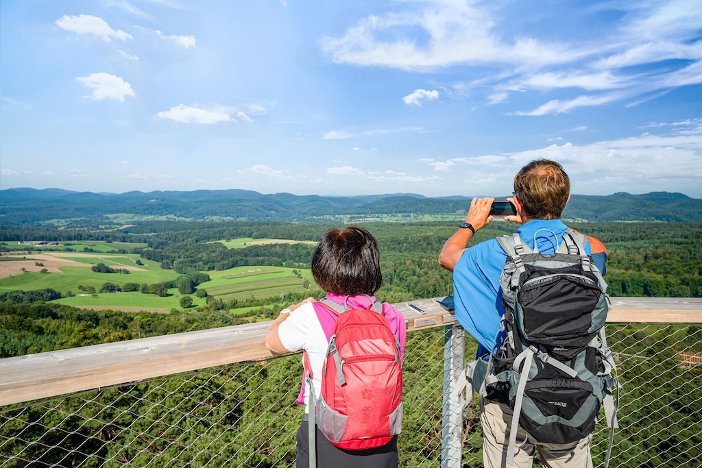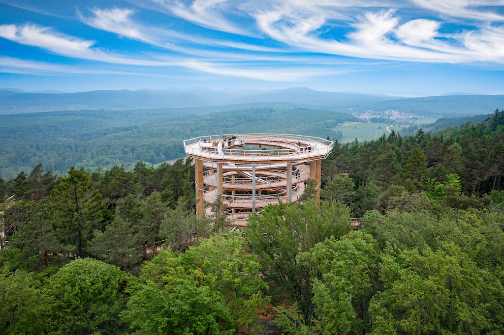 Der Baumwipfelpfad Elsass wurde so gestaltet, dass er Naturerlebnis, Bewegung und Bildung verbindet. Besonders eindrucksvoll ist der Blick vom Turm, der als einer der höchsten Punkte in der Region gilt : Bei klarer Sicht schweift dein Blick über die weiten Wälder der Nordvogesen bis hin zum Schwarzwald und zur Rheinebene. Die Strecke ist angenehm begehbar – das macht sie auch für Familien mit Kinderwagen oder Menschen mit eingeschränkter Mobilität gut zugänglich.