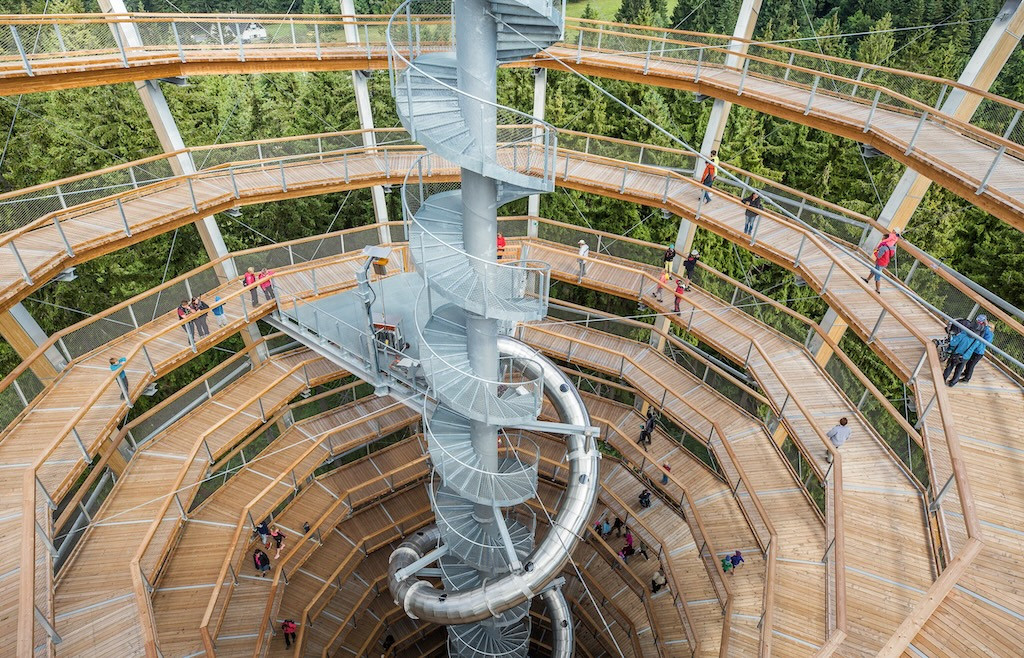 Der Pfad erstreckt sich über rund 1.500 Meter und mündet im 45 Meter hohen Aussichtsturm. Im Turm selbst wurde neben einer langen Rutsche auch eine Trampolin-Netzstruktur auf zwei Ebenen integriert.