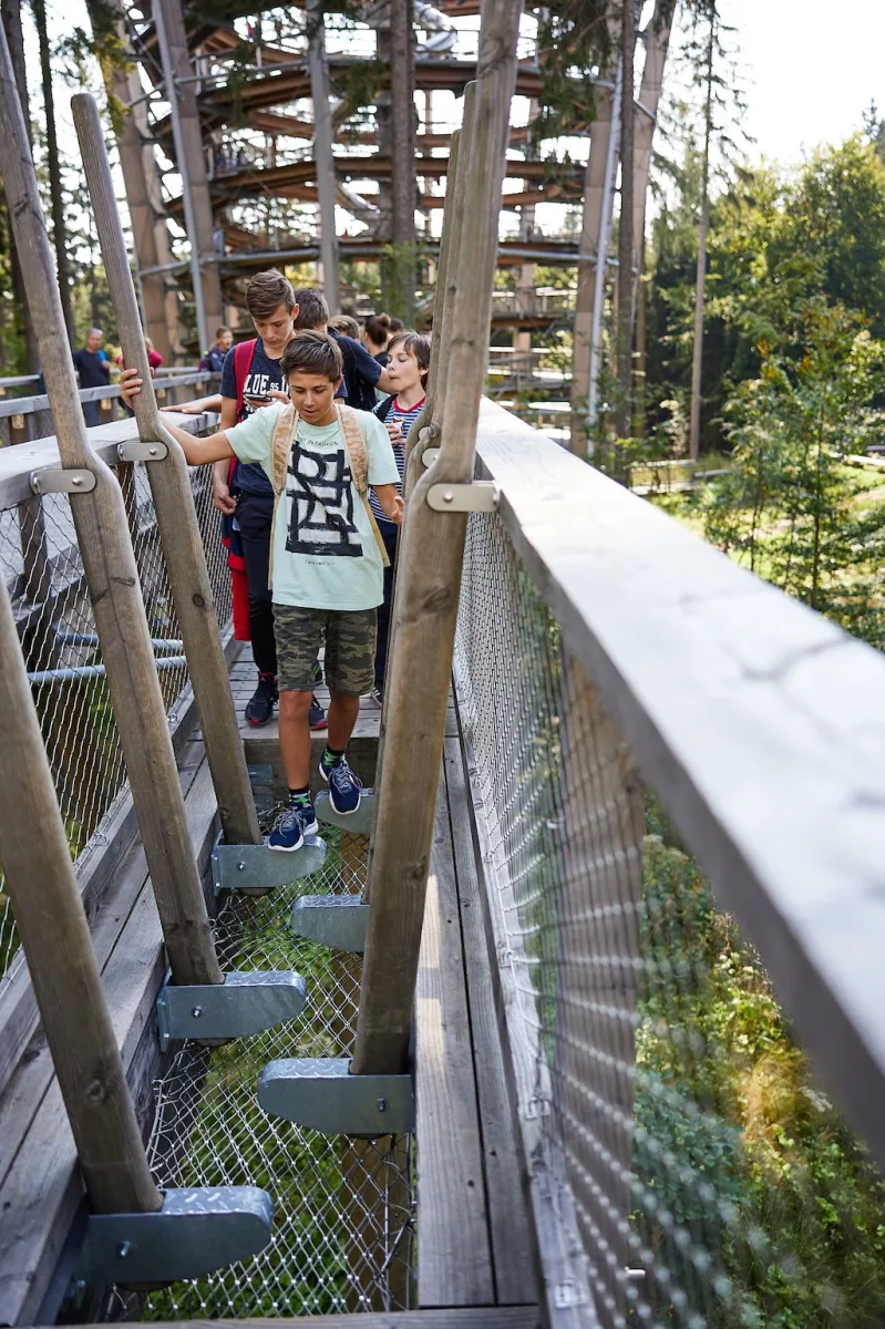 Ein Highlight ist die sogenannte Wurzelhöhle unter dem Turm, in der die Besucher das Ökosystem Boden erleben können. Von hier aus startet die Reise durch die verschiedenen Zonen des Waldes bis hinauf zur Baumkrone. Das Projekt wurde mit Rücksicht auf die Natur umgesetzt und hat sich seither als beliebtes Ausflugsziel etabliert.