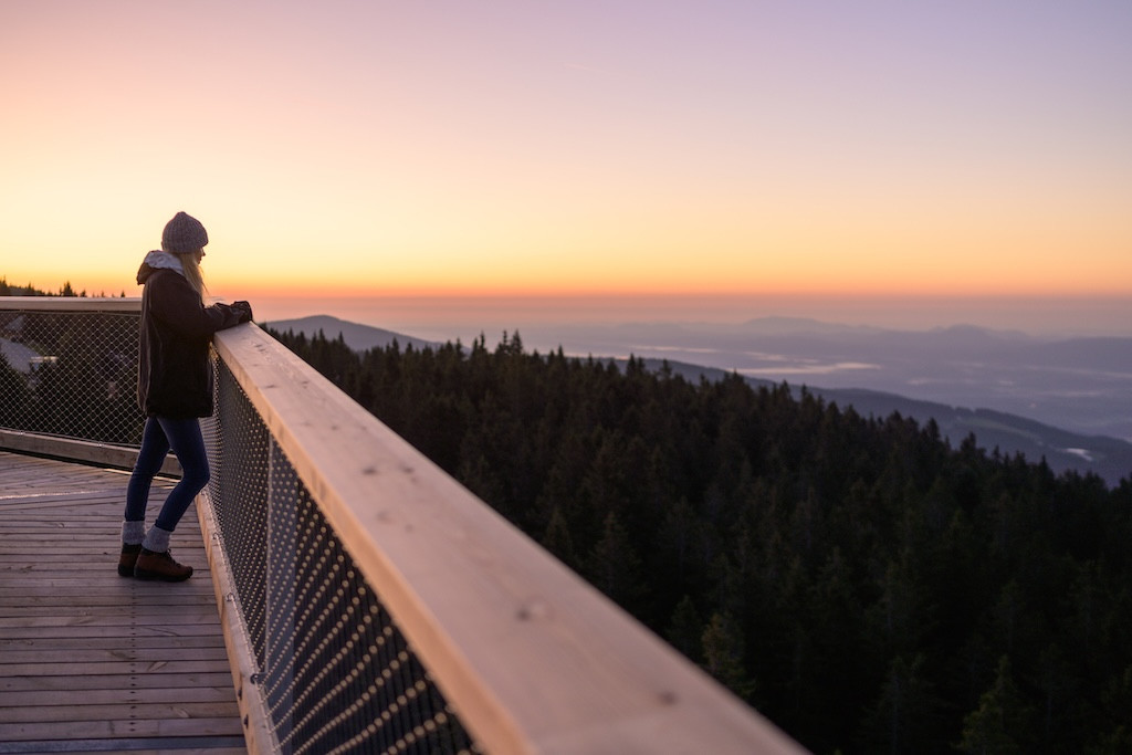 Der Baumwipfelpfad Pohorje führt durch eine Höhenlage, die für solche Anlagen eher selten ist. Die Landschaft ist geprägt von uralten Baumriesen und einer frischen Bergluft, die jedes Naturerlebnis noch intensiver macht. Die Architektur des Pfades fügt sich harmonisch in den Wald ein und schafft Raum für Entschleunigung und Entdeckung zugleich. Das Highlight ist der spiralförmige Aussichtsturm, der einen Rundumblick über das Pohorje-Gebirge ermöglicht und durch die integrierte Rutsche auch sportliche Besucher begeistert.