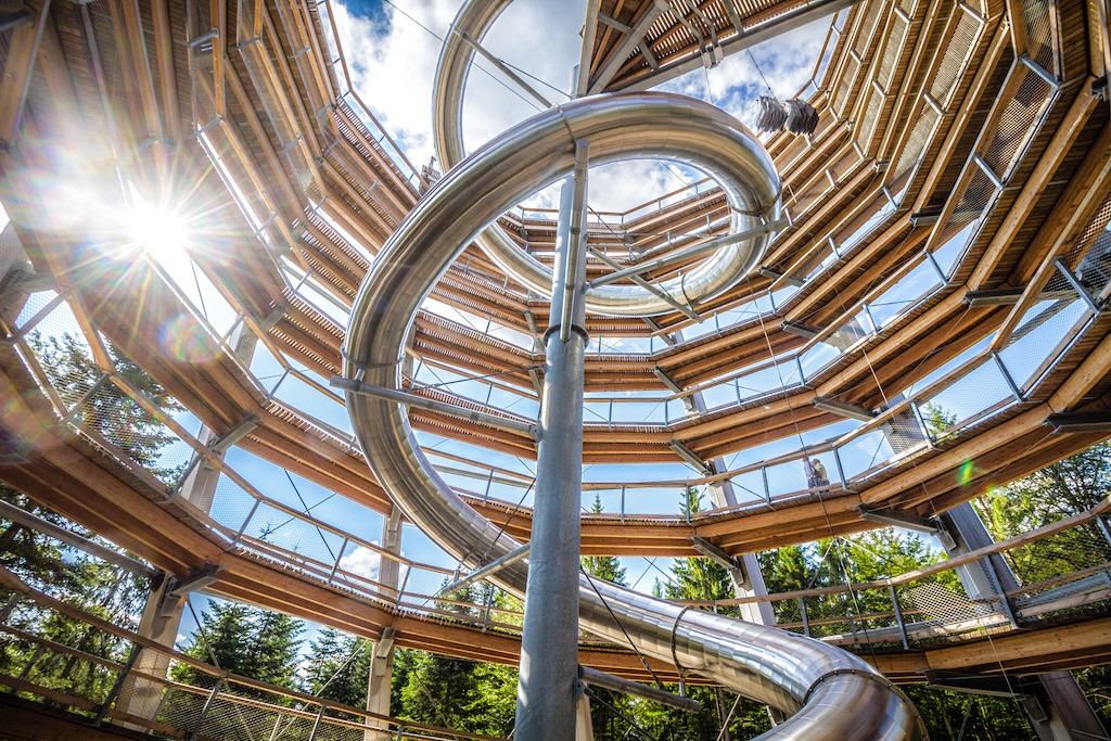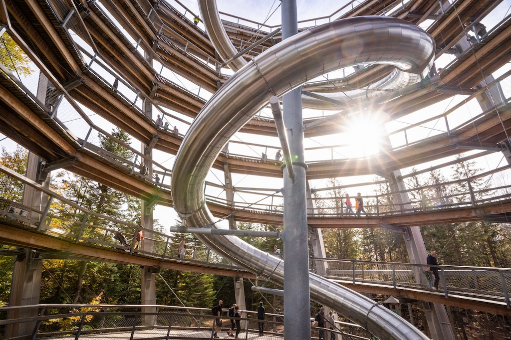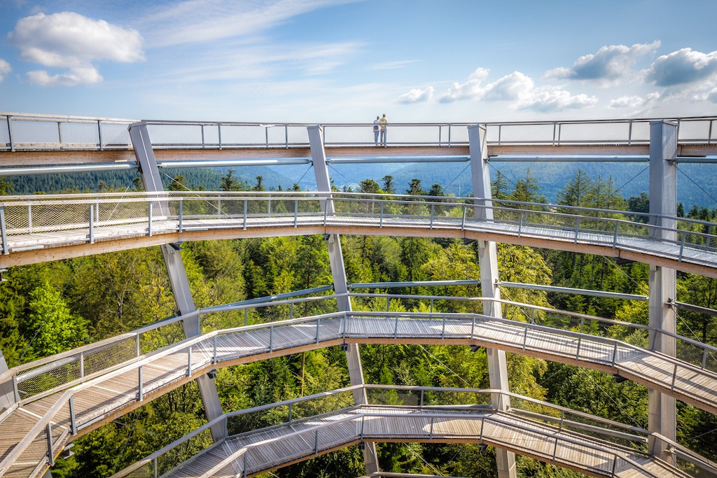 Der Baumwipfelpfad Schwarzwald bietet dir die Möglichkeit, den Wald aus einer neuen Perspektive zu erleben. In bis zu 20 Metern Höhe schlängelt sich der Pfad durch die Baumwipfel und ermöglicht einzigartige Einblicke in die Struktur und das Leben des Waldes. Der Höhepunkt ist der 40 Meter hohe Aussichtsturm, von dessen Plattform du einen beeindruckenden Rundumblick über den Schwarzwald, das Rheintal und bei klarer Sicht sogar bis zum Kraichgau, dem Stuttgarter Fernsehturm und der Schwäbischen Alb genießen kannst. Für den besonderen Nervenkitzel sorgt die 55 Meter lange Tunnelrutsche im Inneren des Turms, die sich spiralförmig nach unten windet. Der gesamte Pfad ist barrierearm gestaltet und somit für alle Besucher zugänglich